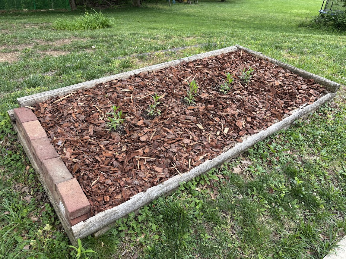 In the end, I made very little progress toward my goal of turning my backyard into a wildflower garden, but I have to say I was kind of excited to fill in the bed out front a bit more. I'd thought that my front landscaping was going to have to wait until I made a lot more progress on the back yard, but through my own incredible over-ambition when it came to the back yard project, I managed to get it almost completely filled.
